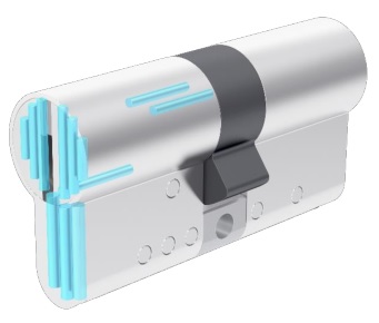 Keso Ultra cuenta con 6 pasadores verticales en forma de cortina que protegen de forma eficaz contra el taladrado, e incluso contra el fresado con herramientas de alto rendimiento y fresas de vaciado. Fabricados en una aleación especial endurecida, protegen el núcleo del cilindro de los ataques más violentos. Pasador anti-taladro longitudinal en entrada de llave.